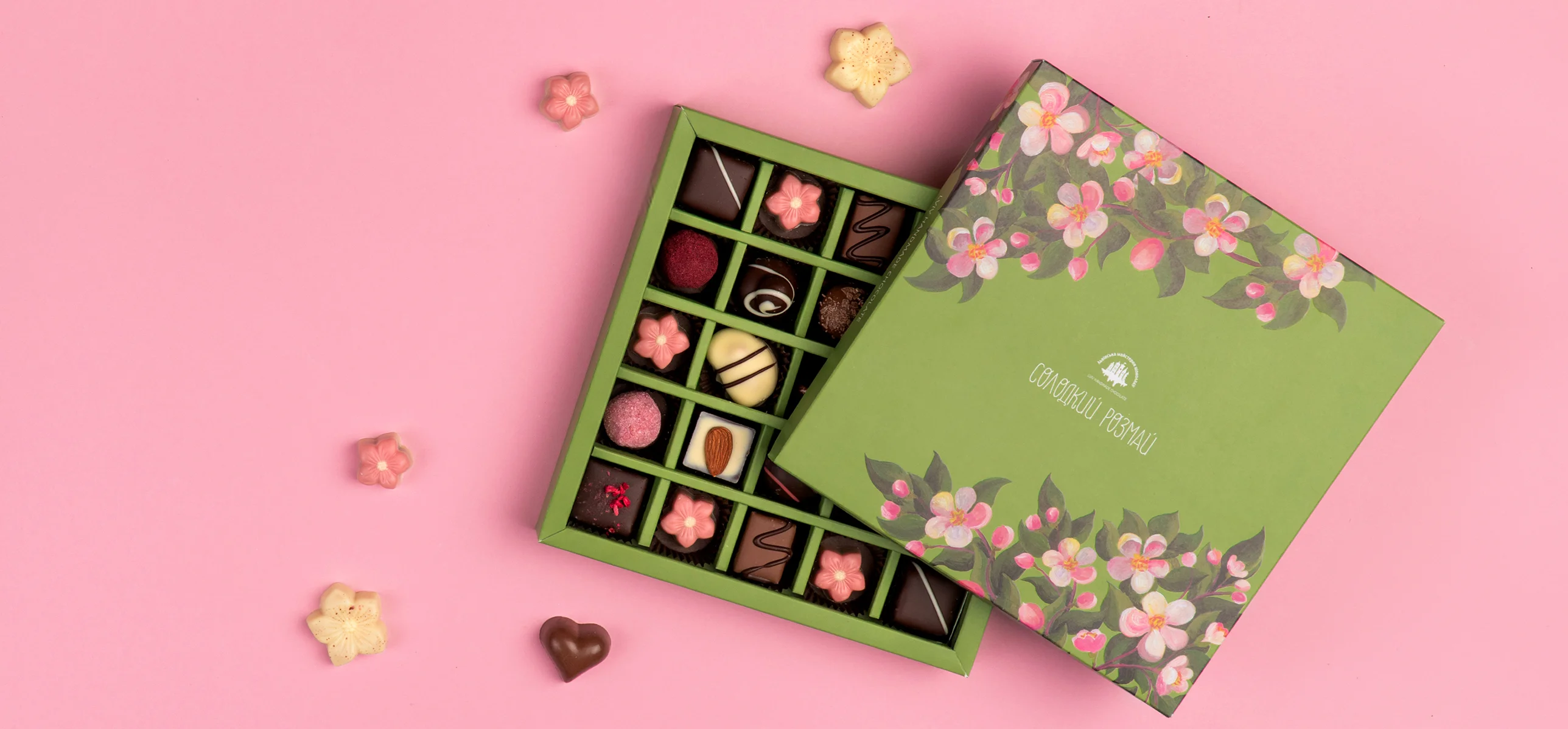 Весняний набір цукерок в дерев'яній коробці